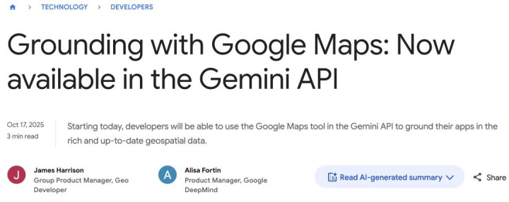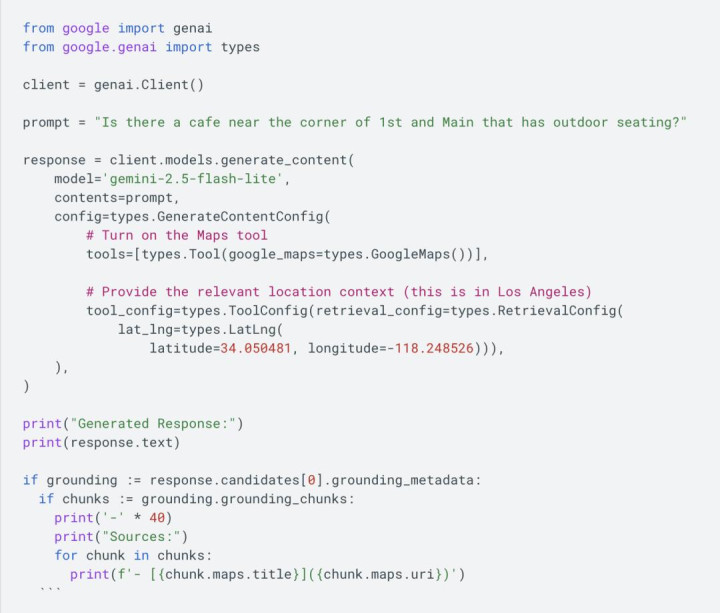 这让第三方开发者把结合Gemini的推理能力与Maps的地理数据,生成更准确、更贴合现实的回应——